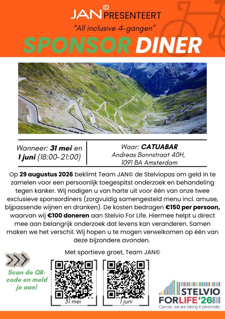 Op 29 augustus 2026 zullen onze meest sportieve collega’s wederom de iconische Stelvio beklimmen. Een sportieve uitdaging, maar vooral een klim met een doel: bijdragen aan betere, persoonlijkere kankerzorg.